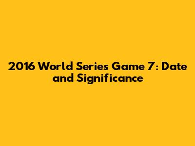 2016 World Series Game 7: Date And Significance
