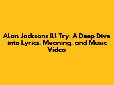Hey everyone! Today, we're diving headfirst into one of Alan Jackson's most heartfelt songs, "I'll Try." This country ballad isn't just a tune; it's a story, a promise, and a testament to the enduring power of love and commitment. So, grab your headphones, get comfy, and let's break down everything from the lyrics to the music video. Trust me, by the time we're done, you'll have a whole new appreciation for this classic. Let's get to it!