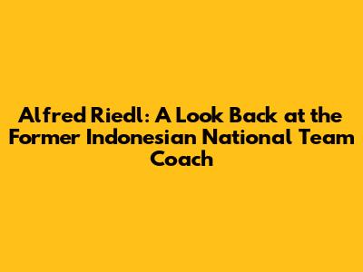 Alfred Riedl: Former Indonesian National Team Coach