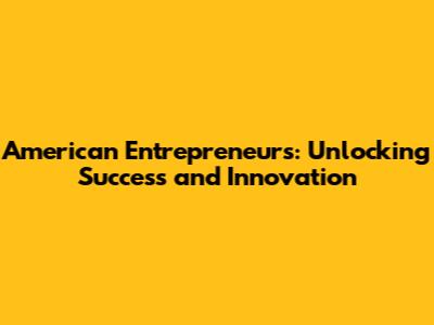 American Entrepreneurs: Unlocking Success And Innovation