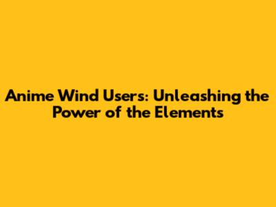 Anime Wind Users: Unleashing The Power Of The Elements
