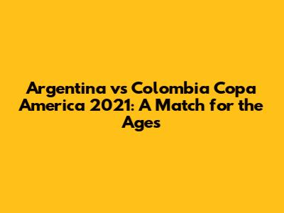 The Argentina vs. Colombia match at Copa America 2021 will be remembered for its thrilling moments and its impact on football. It serves as a reminder of the sport's unpredictable nature and the emotional connection it fosters among fans. The game's legacy continues to inspire players and fans, highlighting the excitement and drama that make soccer the world's favorite sport. The match has left a lasting impact on soccer enthusiasts worldwide. The game's legacy will be cherished by fans for years. The echoes of the match will be heard for years to come. This encounter will be remembered for its thrilling moments and its impact on the sport. The game's legacy will be cherished by fans for years. The match remains a testament to the sport's ability to unite and thrill fans worldwide.