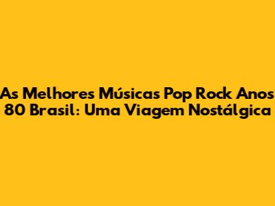 As Melhores Músicas Pop Rock Anos 80 Brasil