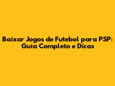 Baixar Jogos De Futebol Para PSP: Guia Completo E Dicas