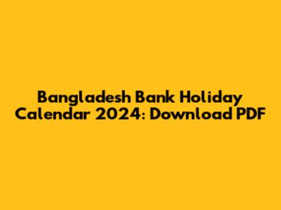Bangladesh Bank Holiday Calendar 2024: Download PDF