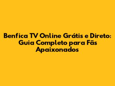 Onde Assistir à Benfica TV Online Grátis e Direto?