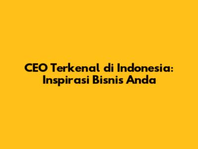 CEO Terkenal Di Indonesia: Inspirasi Bisnis Anda