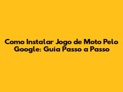 Como Instalar Jogo De Moto Pelo Google: Guia Passo A Passo