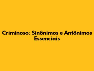 Criminoso: Sinônimos E Antônimos Essenciais