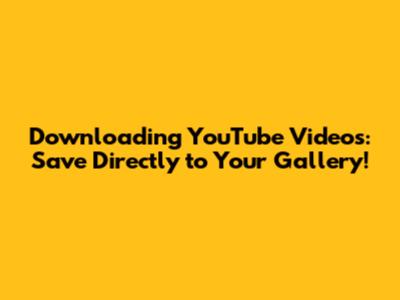 Download YouTube Videos: Save Directly To Your Gallery!