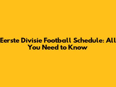 Eerste Divisie Football Schedule: All You Need To Know