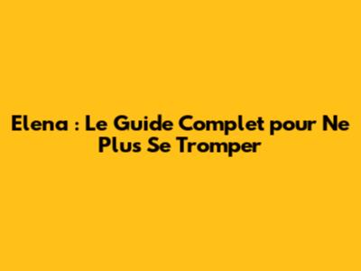 Elena : Le Guide Complet Pour Ne Plus Se Tromper