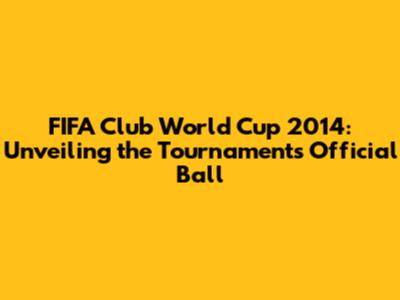 FIFA Club World Cup 2014: Unveiling The Tournament's Official Ball