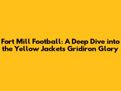 Hey sports fanatics, are you ready to dive deep into the exciting world of Fort Mill Football? The Fort Mill Yellow Jackets have a rich history, dedicated players, and passionate fans, making every game a must-watch event. This article is your ultimate guide, covering everything from the latest news and schedules to the team's history and future prospects. So, grab your snacks, settle in, and let's explore the heart of Fort Mill's football scene!