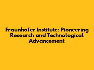 Fraunhofer Institute: Research & Technology Explained