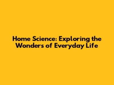 Home Science: Exploring The Wonders Of Everyday Life