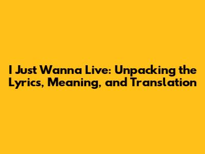 I Just Wanna Live: Lyrics, Meaning & Translation