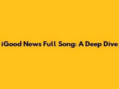 Hey guys! Today, we're diving deep into the iGood News full song. This track has been making waves, and for good reason. Whether you're a long-time fan or just discovering this gem, let’s break down everything that makes it so special. We'll explore its origins, dissect the lyrics, talk about the production quality, and even touch on its cultural impact. So, buckle up and get ready for a comprehensive exploration of this awesome song!