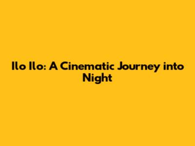 Ilo Ilo: A Cinematic Journey Into Night