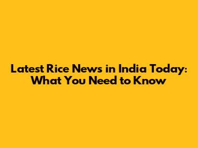 Latest Rice News in India Today: What You Need to Know