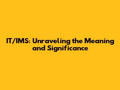 IT/IMS: Unraveling The Meaning And Significance