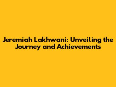 Jeremiah Lakhwani: Unveiling The Journey And Achievements