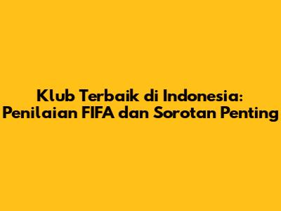 Jadi, klub terbaik di Indonesia menurut kriteria yang relevan dengan standar FIFA adalah klub yang mampu menunjukkan kualitas di berbagai aspek, mulai dari prestasi di lapangan, kualitas pemain, infrastruktur, manajemen, hingga pengembangan pemain muda. Meskipun FIFA tidak memberikan peringkat resmi untuk klub, standar dan regulasi yang mereka tetapkan memberikan dampak besar dalam membentuk kualitas klub sepak bola di seluruh dunia. Klub-klub seperti Persija Jakarta, Persib Bandung, Persebaya Surabaya, Arema FC, dan Bali United adalah contoh klub yang patut diperhitungkan karena telah menunjukkan komitmen untuk memenuhi standar tersebut.