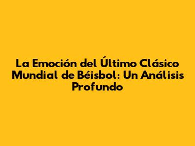 La Emoción Del Último Clásico Mundial De Béisbol: Un Análisis Profundo