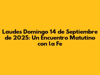 隆Hola a todos! Prep谩rense para sumergirse en las Laudes de hoy domingo 14 de septiembre de 2025. Es un d铆a perfecto para comenzar con el pie derecho, llenando nuestro coraz贸n y mente con la palabra de Dios. En este espacio, exploraremos las lecturas, reflexionaremos sobre su significado y nos uniremos en oraci贸n. 驴Listos para esta aventura espiritual? 隆Vamos all谩!