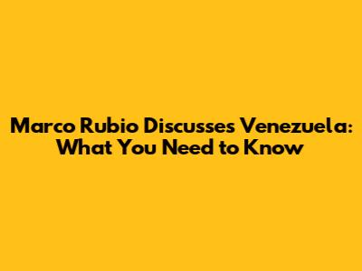 Marco Rubio Discusses Venezuela: What You Need To Know