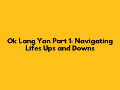 Ok Lang Yan Part 1: Navigating Life's Ups And Downs