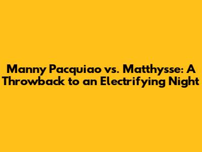 - Rounds 4-6: Pacquiao began to find his rhythm, increasing his punch output and landing more frequently. His combinations were sharp and accurate, keeping Matthysse on the defensive. In the fifth round, Pacquiao landed a strong left hand that momentarily stunned Matthysse.