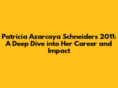 Hey guys, let's talk about Patricia Azarcoya Schneider's 2011. This year marks a significant point in her career, a time when she was really starting to make waves in the entertainment industry. We're going to dive deep into what she was up to, the projects she was involved in, and the overall impact she had during this pivotal year. Get ready for a fascinating journey through the world of film and television, with a focus on the amazing Patricia Azarcoya Schneider!