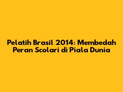 Pelatih Brasil 2014: Kisah Scolari Dan Perjalanan Di Piala Dunia