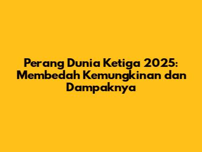 Jika Perang Dunia Ketiga pecah pada tahun 2025, dampaknya akan sangat dahsyat dan merata ke seluruh dunia. Kita perlu membayangkan konsekuensi terburuknya agar kita lebih waspada dan berupaya mencegahnya.