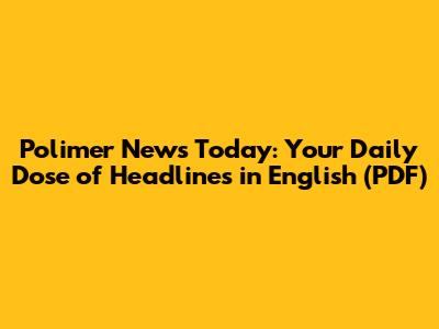 Polimer News Today: Latest Headlines In English (PDF)