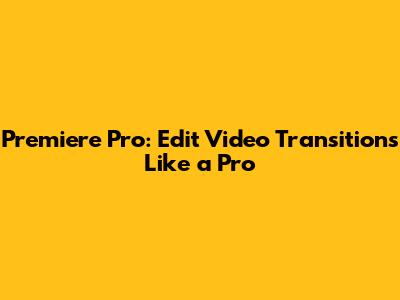 Premiere Pro: Edit Video Transitions Like A Pro