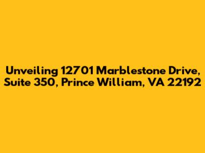 Hey there, folks! Today, we're diving deep into a specific location that might be on your radar: 12701 Marblestone Drive, Suite 350, Prince William, VA 22192. Whether you're looking to set up shop, find a new office space, or perhaps you've received mail at this address and are curious, we're here to break it all down for you. This isn't just any random collection of numbers and street names; it represents a physical point in Prince William County, Virginia, a place that’s seen its share of growth and development. Understanding specific addresses like this is crucial in a world that’s increasingly digital yet still very much grounded in the physical. So, grab a coffee, settle in, and let’s explore what makes this particular spot, 12701 Marblestone Drive, Suite 350, tick. We’ll cover what you need to know, from its geographical context to potential businesses that might call this suite home.