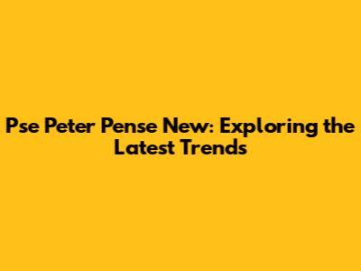 Pse Peter Pense New: Exploring The Latest Trends