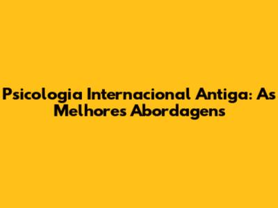 Psicologia Internacional Antiga: As Melhores Abordagens