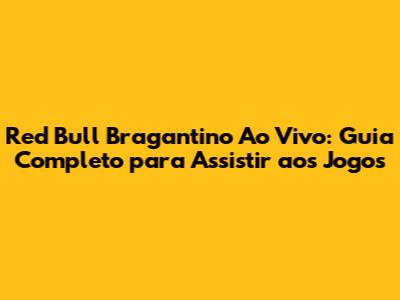 Red Bull Bragantino Ao Vivo: Onde Assistir Aos Jogos