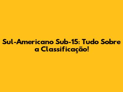 Sul-Americano Sub-15: Tudo Sobre A Classificação!
