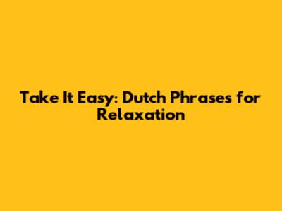 Take It Easy: Dutch Phrases For Relaxation