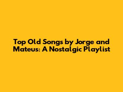Top Old Songs By Jorge And Mateus: A Nostalgic Playlist