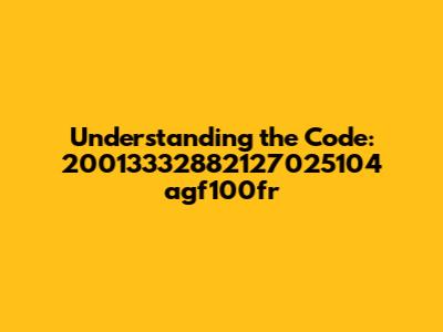 Understanding The Code: 20013332882127025104 Agf100fr