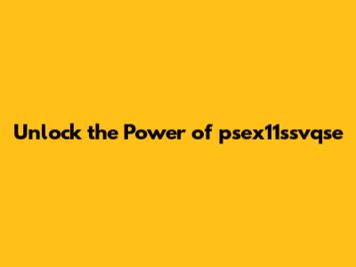 Unlock The Power Of Psex11ssvqse