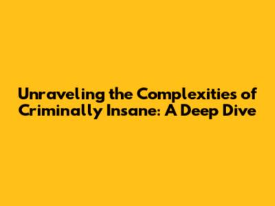 Unraveling The Complexities Of Criminally Insane: A Deep Dive