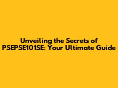 Unveiling The Secrets Of PSEPSE101SE: Your Ultimate Guide