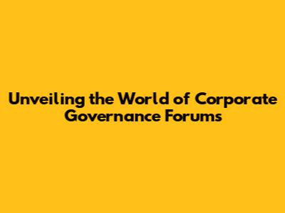 Unveiling The World Of Corporate Governance Forums