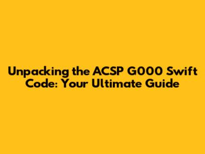 Why is the ACSP G000 Swift Code Important for You?